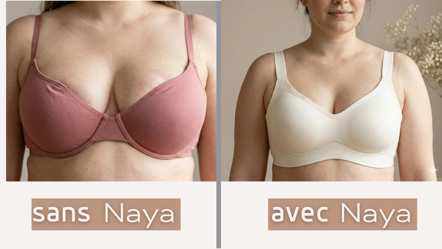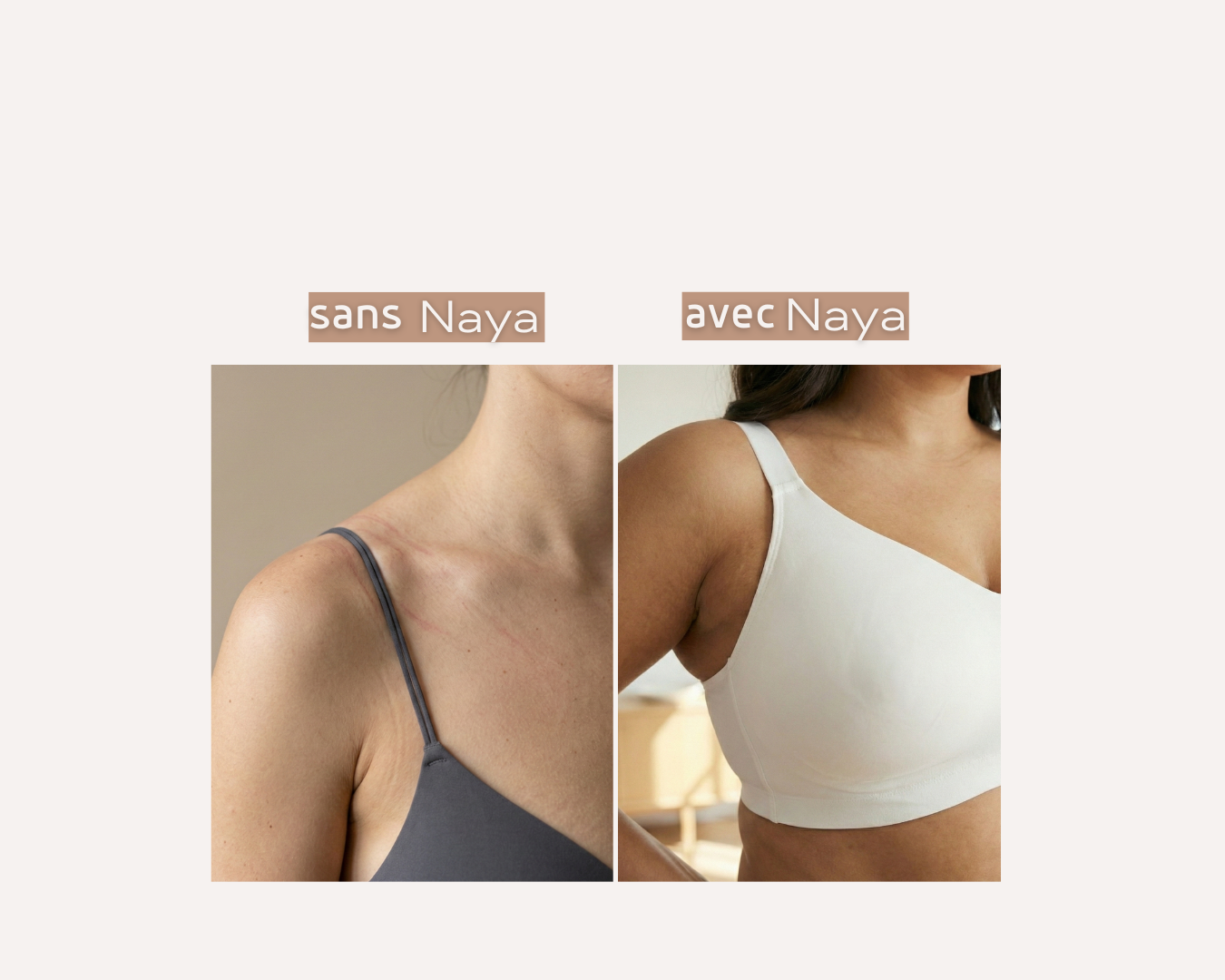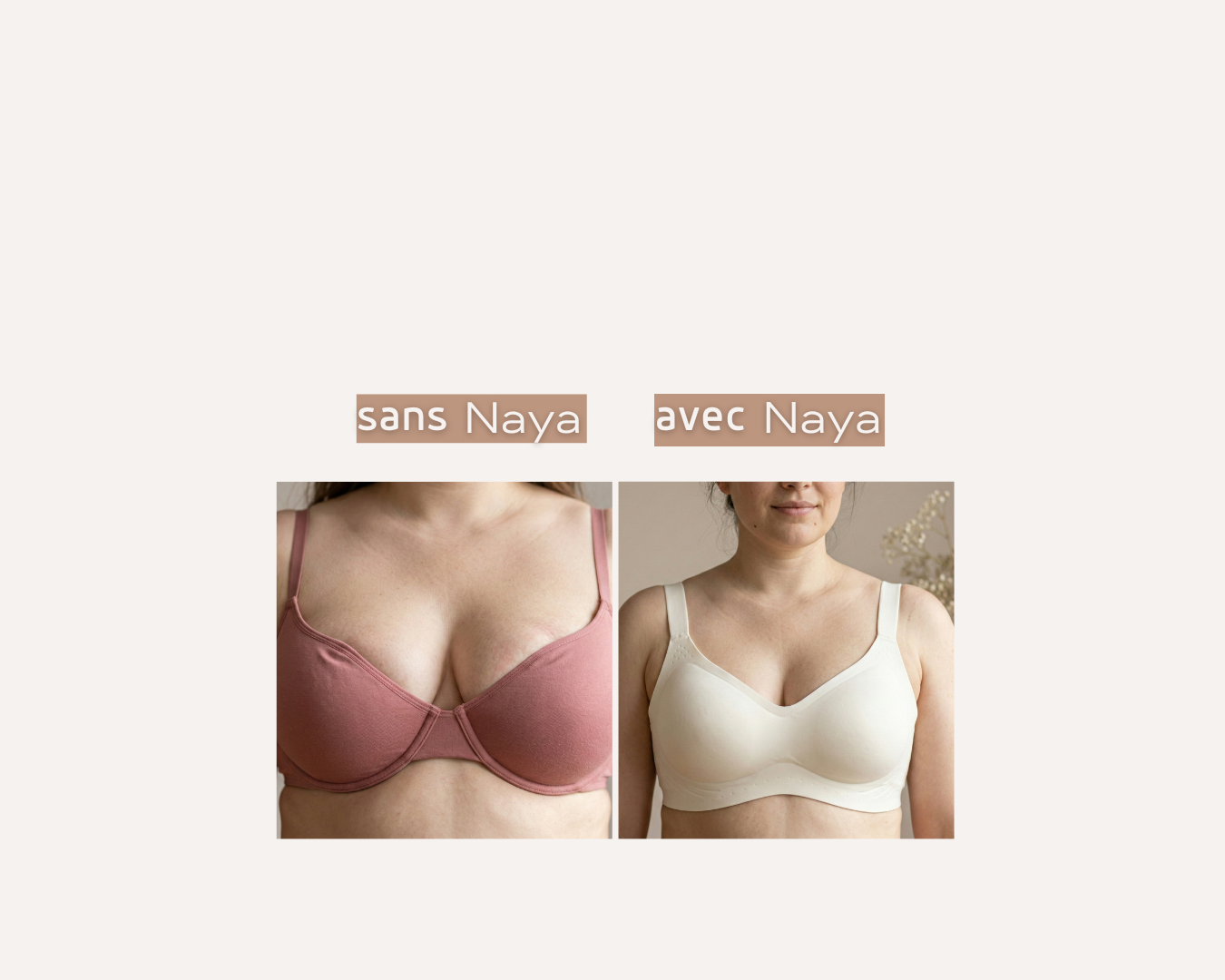 En choisissant une brassièresans armature, vous contribuez à unemeilleure circulation sanguine et lymphatique,ce qui peut aider à prévenir l'inconfort et favoriserune meilleure santé des seins à long terme.Les brassières Naya sont donc non seulementconfortables, mais égalementun choix plus sainpour votre corps.