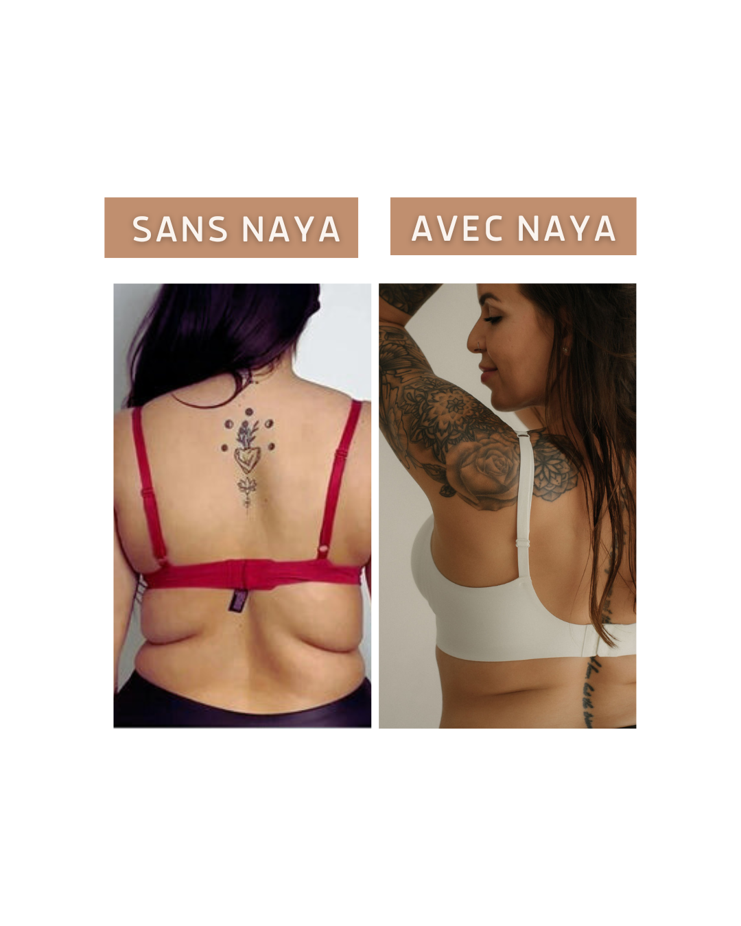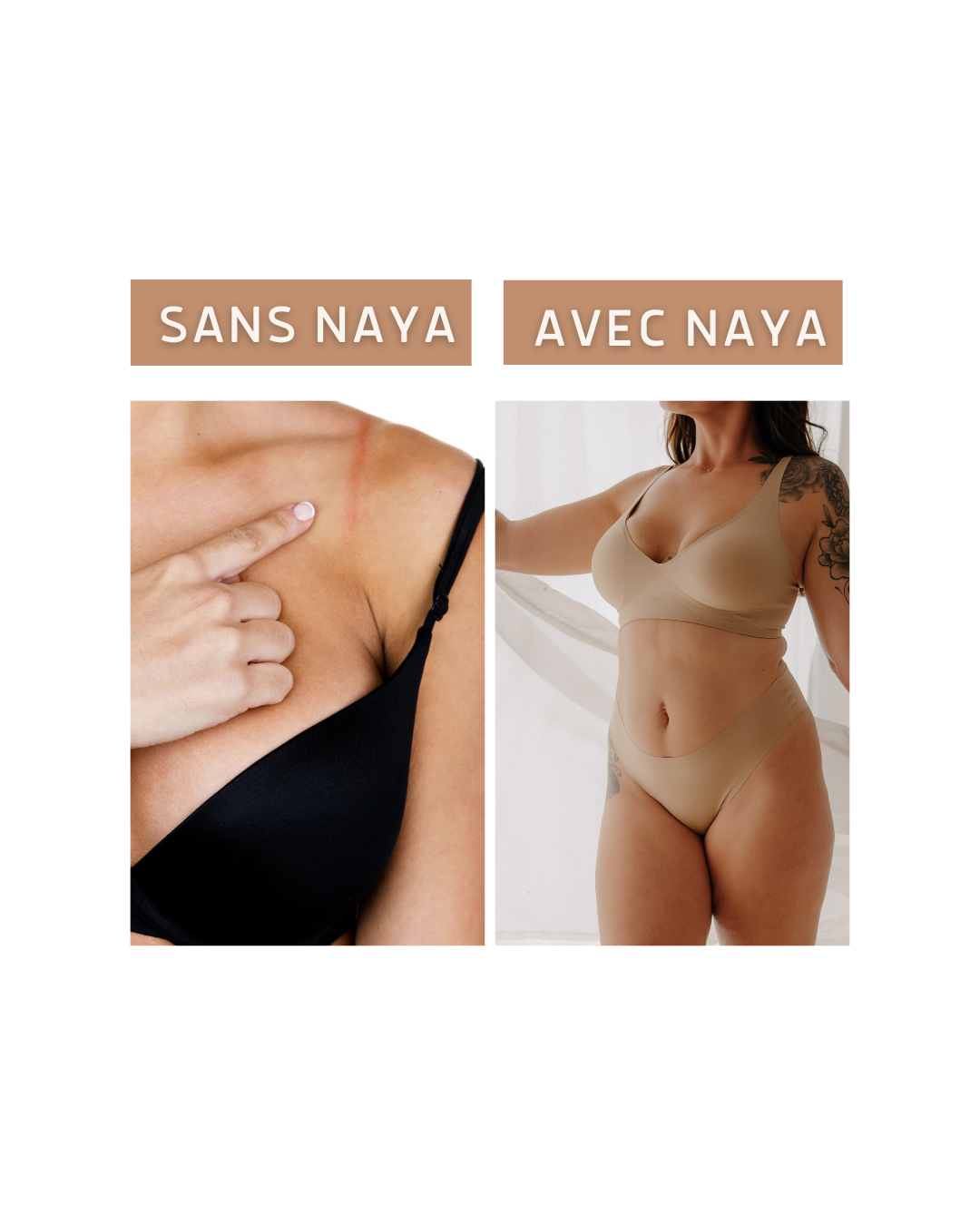 🌿 Favorise la santé mammaire : En choisissant une brassière sans armature, vous contribuez à une meilleure circulation sanguine et lymphatique, ce qui peut aider à prévenir l'inconfort et favoriser une meilleure santé des seins à long terme. Les brassières Naya sont donc non seulement confortables, mais également un choix plus sain pour votre corps.