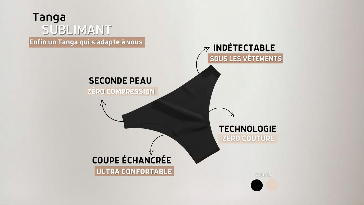 Fini les marques visibles ou les matières irritantes : vous profitez d’un confort absolu, du matin au soir, tout en vous sentant belle, désirable et confiante. Votre féminité s’exprime avec naturel, sans compromis. Invisible, mais toujours présent, le Tanga Sublime accompagne toutes vos journées, avec cette petite touche sensuelle qui vous appartient.
