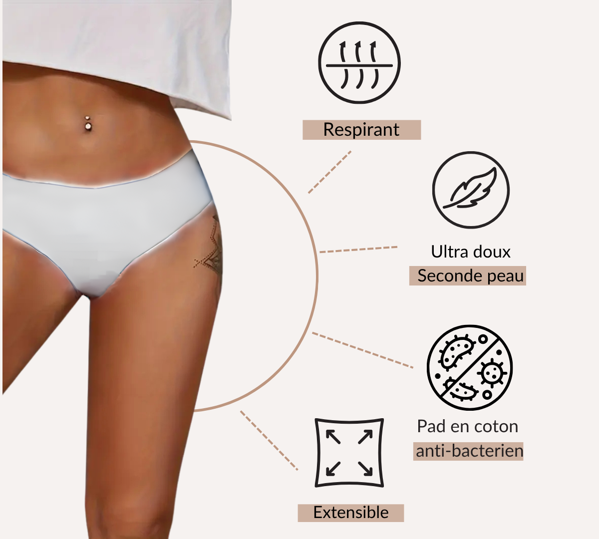 💃 Invisible sous les vêtements : Fini les marques qui coupent la silhouette. Avec sa découpe laser sans couture, il disparaît sous vos tenues, même les plus moulantes. L’assurance d’une allure fluide, élégante… et zéro compromis sur le style.